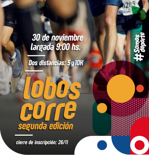 Lobos Corre Llega la segunda edición de Lobos Corre, una competencia de 5 y 10 k con circuito callejero por el casco urbano de Lobos. La largada será desde el Parque Municipal Ingeniero Hiriart con un recorrido por lugares característicos y emblemáticos de la ciudad. 30 de noviembre | 9:00 horas | 5 y 10 k Enlace para la inscripción: https://forms.gle/FxeBmE9f6wDEJh9s8 Cierre de inscripción: 26/11