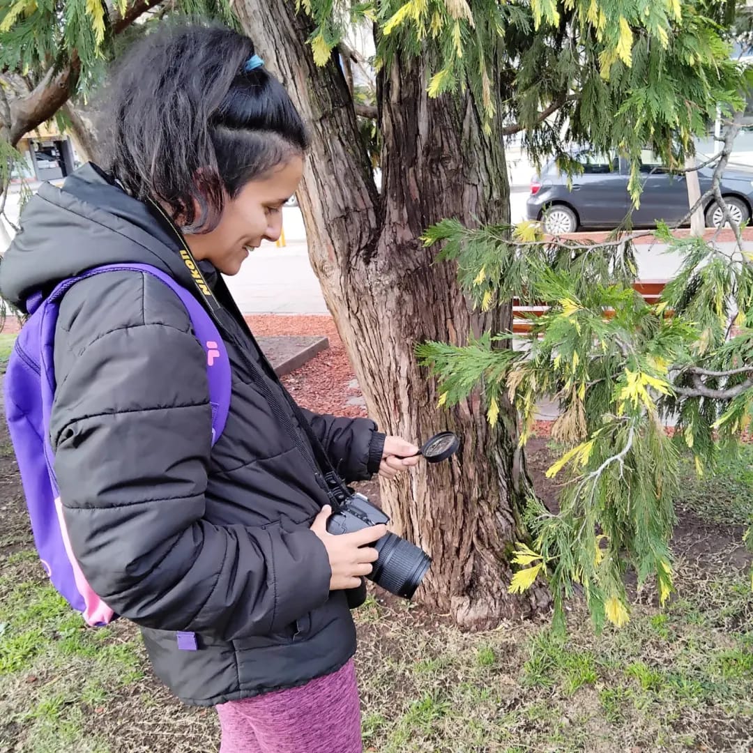 La guiada es acompañada por Marina Córdoba, fundadora del Vivero de Nativas Olinda, en Empalme Lobos, y miembro del COA Las Garzas (Club de Observadores de Aves)