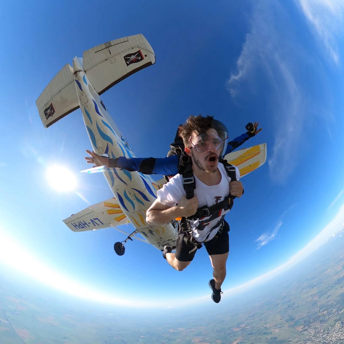 El salto de bautismo comienza con una charla introductoria y continúa con un vuelo panorámico de 25 minutos. A los 3.000 metros de altura, llega el momento del salto: 40 segundos de caída libre y un descenso de 8 minutos bajo el paracaídas, con vistas increíbles del campo bonaerense. Toda la experiencia se graba para que el recuerdo quede para siempre.